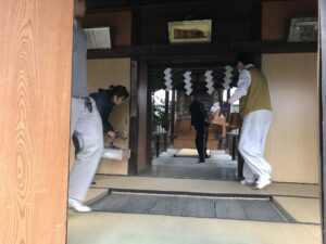 仕事はじめの「清め」です。梅沢会長が準備してくれました。