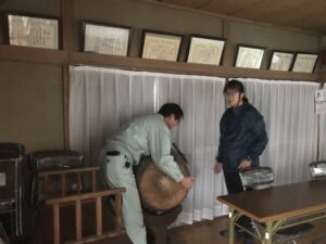 梅沢会長は、タタミの扱いは、プロです。簡単に運んでいます。
