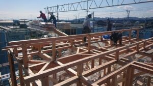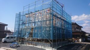 昨日上棟しました。栃本町のI様邸です。棟があがったところの写真です