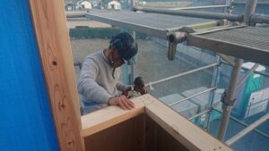 ベランダ回りの下地を「かっちゃん棟梁」がやっていますね