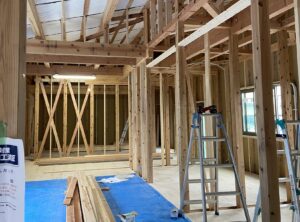 はじめに堀米町のA様邸です。「イケメン大工カワマー」棟梁頑張ってました。(^^♪