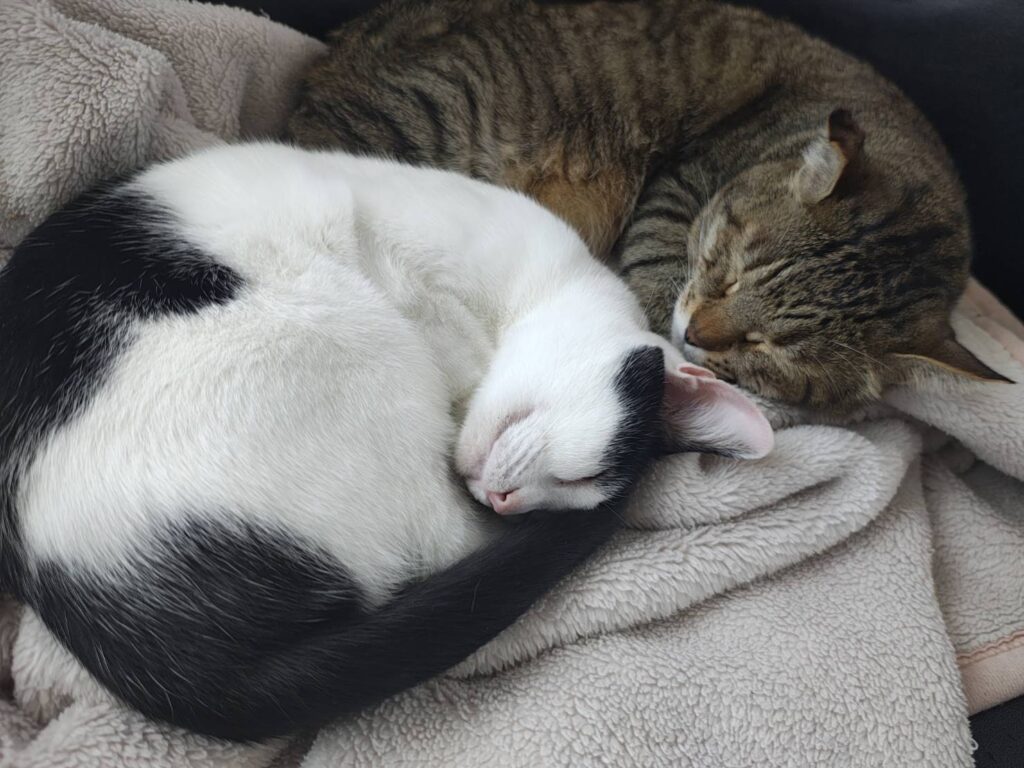 朝起きたら我が家の愛猫2匹がすぐ横で寝てました。