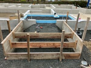 玄関の荒打ちの段取りができたところです。 現在は、コンクリート打ち終わっています。