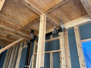 基礎ウレタンの時に「澄家」の配管の段取りしている写真です。