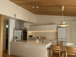 室内は、このような雰囲気で生活されています。木と、ホワイトの色で家電までホワイトでまとめてあり