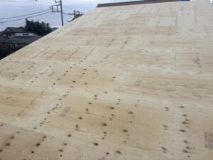 今日は、先日上棟しました、吉水町のT様邸で報告をします。 大屋根の下地が完成しました。