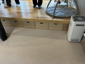 ダウンフロアーの部分の引き出しには、おもちゃが入っていてこちらにみんな収納できます。