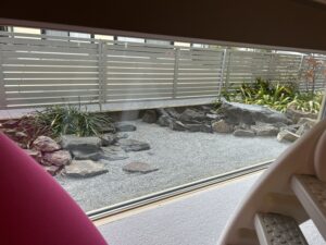 障子の下のFIX窓からは、庭がみえます。(くらしと庭の設計士さんがデザインしているようです)
