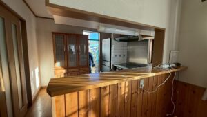 解体が始まった時の写真です。 勝手口があり場所を基準に写真を比べてみてください。 ビフォーの写真です。