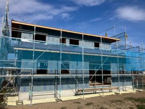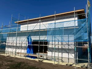 外部は、通気シートを張りました。 窓廻り等の細かい材料は、これから施工します。