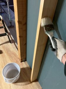 外回りの柱は、加圧注入してありますが、間柱は、防蟻していないので「ホウ酸」を塗ります。