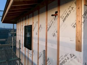 こちらは、免鳥町のT様邸です。 外壁の下地も進んでいます。