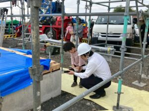 伊勢崎の真壁パネルの会社のスタッフ 現場研修で参加しました。休み時間に見学をしています。