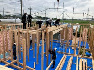 千葉研修から戻りました 内容は、後日報告します。今日葉、15日に建て方を行いました、伊保内町のU様邸の報告をします。