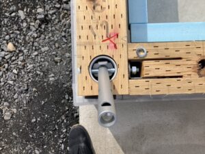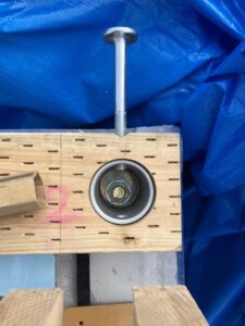 このように柱の芯の16φにホールダウンが基礎から出ています。そこに楕円のワッシャーを付け