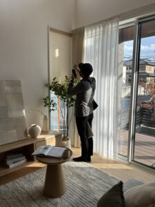 正也ンも参加! カーテンに興味があるようですね(^^♪
