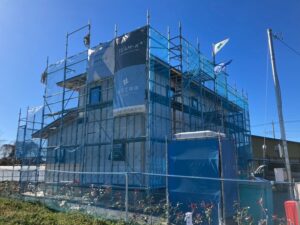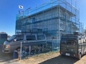 免鳥町のT様邸です。外部の外壁下地胴縁写真をUPし忘れていまいした。このように進んでいます。北、東面