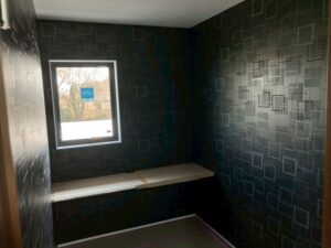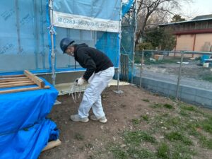 もう一件の現場は、免鳥町のT様邸です。 内装工事(クロス工事)が終わり~エコカラットの工事がはじまりました。