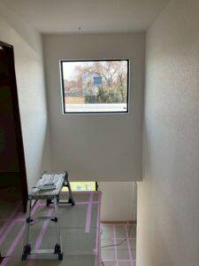階段ホールからの景色もバッチリ! 気持ちよく過ごせる家の完成が楽しみですね(^^♪