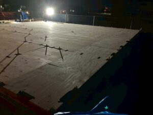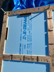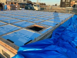 土台敷~断熱入れ~根太レス合板工事は、このように完了しています。暗くなるまでお疲れ様でした。