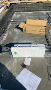 現状は、土間が終わり~立ち上がりの枠を組んでいます。浴室には、断熱の点検口を付けました。