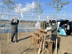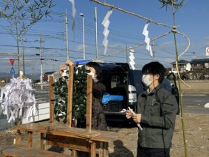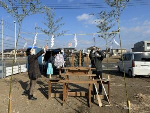 今日は、10時から栃木市のT様邸の地鎮祭を行いました。 朝9時40分に到着! 「シデ」の取付お手伝いから~