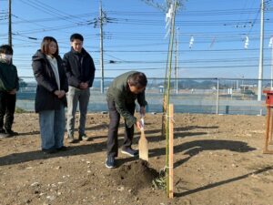 続きまして奥様「エイ!エイ!栄!」 無事鍬入れ完了です!(^^♪
