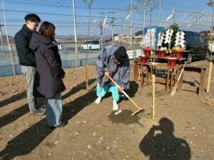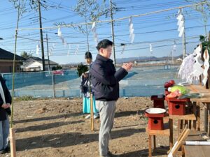 T様、今日は地鎮祭おめでとうございます。いよいよ着工になります。進んでいくのが楽しみですね(^^♪