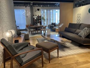 こちらは、家具の展示です。 インテリア事業部(高級雑貨もあり)があります。