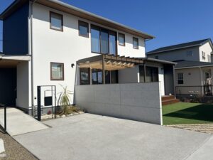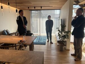 今日もよいお天気になりました。今日は、植下モデルのウッドビルドの寺島社長と、WB担当の松阪さんが取材に長野から来ていただきました。(WB工法を開発した会社の社長さんです)