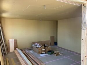 壁にボードが貼ってあるところもあり順調に進んでいます。