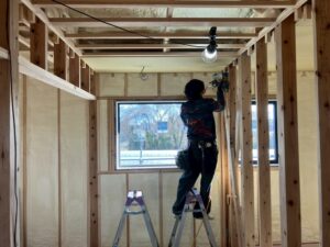 こんな感じでのお仕事です!天井のボード張をしています。