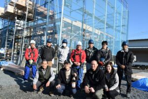 今日は、佐野市栃本町のI様邸の建て方を行いました。 少し風が強かったですが良いお天気で良かったです。 朝きよめを行い記念写真!(^^♪ 自分が一升瓶のお酒をもっていますが、きよめのお酒で飲んでません( ^)o(^ ) […]