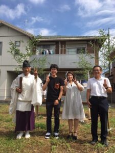 今日は、暑さが戻ってきたような暑さになりました。 今日は、館林市K様邸の地鎮祭を行いました。 暑いのでテントに準備を神主さんにして頂きました。 地鎮祭がはじまり~「四方払い」をしている写真です。 「はらえたまえ~き […]