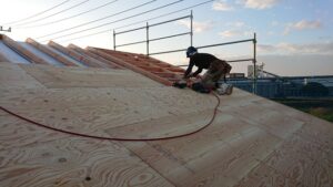 今日は、朝まで雨が降っていたせいか蒸し暑い一日でした。 こちらは、千代田町のM様邸です。 朝のうち「グッチー社長」が打合せに来たようです。大型サッシの搬入の打合せだと思います。 屋根も妻の出を工夫しているM様邸です。 […]