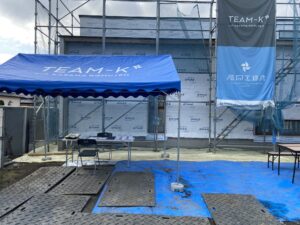 今日は、構造見学会初日を無事迎えることができました。 昨日、今日の朝と、スタッフに頑張ってもらい準備ができました。 外部は、こんな感じです。 室内も奥が広い状況になっています。 あきないように、それなりの展示もし […]