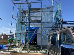 今日は、風が強くて寒い一日でした。( ゚Д゚) こちらは、藤岡町のK様邸です。昨日の現場写真です。半分屋根が終わりした。 今日も風の中順調に進んでいます。 室内もこんな感じです。緑色は、ホウ酸を塗ったところです。 シロア […]