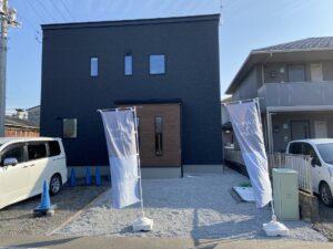 今日は、暖かくなりましたね。 今日は、天神町のT様邸の完成見学を行いました。 T様邸を南から見た写真です。 デッキも完成してます(^^)/ 室内は、こんな雰囲気で仕上がっています。(^^♪ 外観と同じように、黒と、木 […]