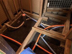 今日も雨が降らなくて助かりました。 今日も昨日に引き続き 水回り解体工事を行いしました。 ユニットバスを入れるので残土がかなり発生します。 浴室の中の土間取工事ほぼ完了! 生きている配管が埋まっていいますが うまく解体 […]