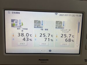 今日も暑くなりました。 今日も体感見学会です。9時半頃の写真ですが暑そうですね( ゚Д゚) 今日は、午前中から外気温31.3℃ 1階25℃ 2階24℃ と1度さです。 段々2階の温度が上がり15時頃同じ温度になるとう […]
