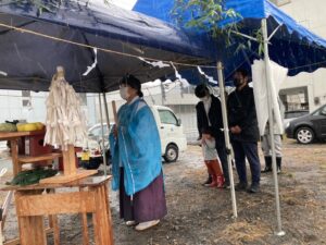雨の中の地鎮祭無事終了!おめでとうございました。