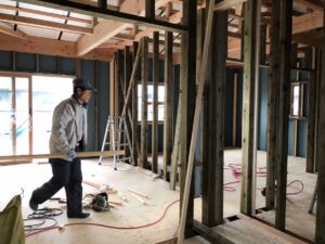今日は、良いお天気になりました。 今日は、万町のK様邸の報告をします。 いよいよ来週末には、足場が解体されます。 室内は階段も付いて、木工事が完了でしました。 これから内装工事がはじまります。 2階バルコニーは、別の色 […]