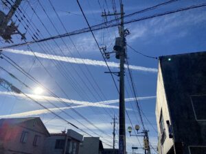 夜中は、風が強かったですね。風も音で目が覚めました( ゚Д゚) 今日は、本社から南の空をみますと3本の飛行機雲が・・ 2階からも見ましたがこれから雨が降るわけでもないのに 珍しい飛行機雲を見ることができました。西日本の […]