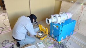 今日は昨日足場が外れました「松尾モデル」に足を運びました。 今日から外部の設備工事がはじまりました。 ポテト設備「ポテマー」社長と朝打合せをすませてきました。 こちらは、気密測定をしている「正也ん」です。 今年入社して […]