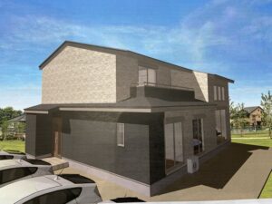 今日も朝日町のE様邸の報告になります。 今日は、昨日の続きから~タルキを打ったところです。 担当の「イケメン大工カワマー」棟梁野地頑張っています。 弊社、社員大工「アキラー」も負けては、いられません! 釘打ち機を倒さな […]