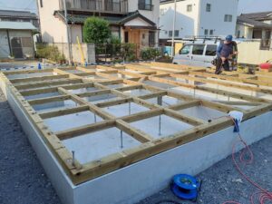明日、建て方を行う為お天気が心配です。 台風から温帯低気圧になるので被害が少ない事を祈ります。 明日建て方の大祝町のS様邸です。 今日は、材料搬入+1階を組ました。 明日は、いよいよ建て方で棟が上がります(上棟)(^^♪ […]