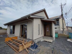 今日も暑くなりました。朝のうちは、カラットして気持ちが良かったので段々と秋が近づいている予感がします。 今日も1件の報告をしますね こちらは、朝日町のE様邸です。外壁も終わり、 樋を掛け~足場解体もう少しです。 玄関も綺 […]