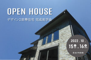 【終了しました】10月15日(土)16日(日)「吹き抜けでつながるデザイン2世帯住宅」完成見学会を開催します。