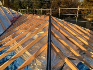 今日は、朝のうちは、はっきりしないお天気でしたが 良いお天気になりました。 上羽田のN様邸です。トップライト下地の写真です。 タルキの断面欠損を防ぐタルキに断熱施工をしています。 以外と気が付かない場所です。野地を […]