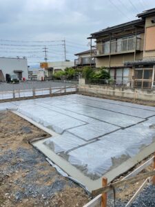 今日は、基礎工事の報告をします。 こちらは、吉水駅前のT様邸です。水盛やりかた(水平に貫を打って基礎の基準にします) 砂利の下地作りりから~ ビシット!事業を行い。 今日は、ターミダンシートを敷いて~捨てコンを […]